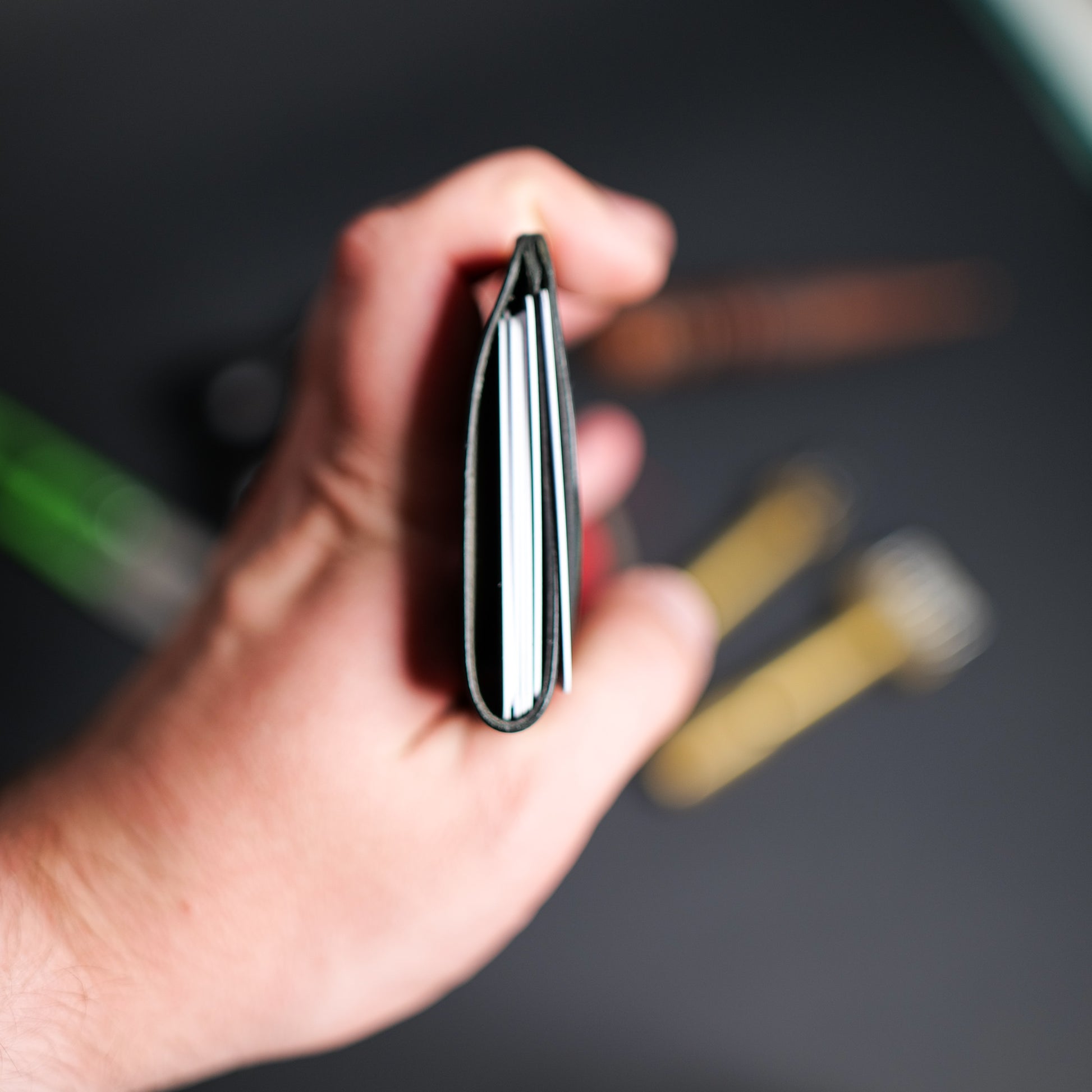 An elegantly simple design with just 2 slots, holding up to 8 cards and cash. We’d recommend a minimum of 4 cards if you buy this wallet. You can use the easy access front pouch to store your most used card, or cash. Designed for minimalists who are also looking for function, with the ability to store your most used cards and take cash out with you when you need it.