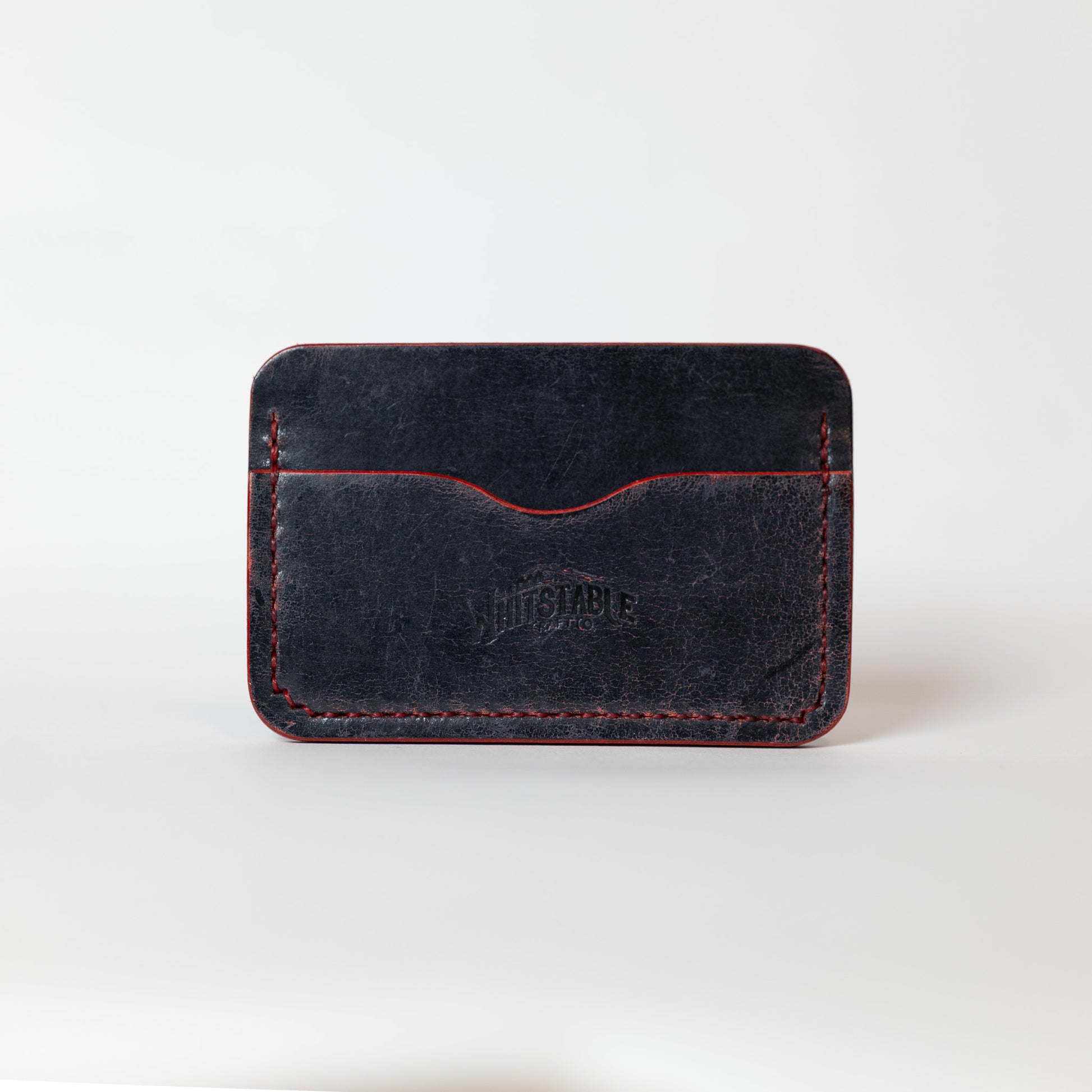 The classic. Built from four panels of full-grain Italian leather, meticulously hand-stitched to form three card slots. Designed to start snug, carry three cards and some folded cash, and expect it to stretch naturally to hold up to six cards. For the most distinguished wallet carrier.