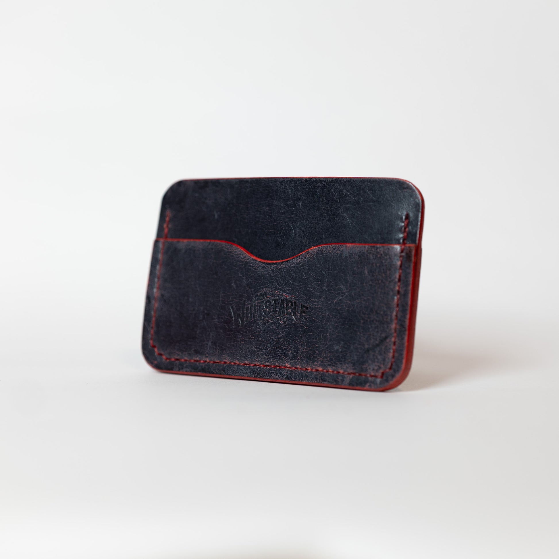 This is a truly awesome leather. It's called "ghost leather" which has a layer of black wax over the top, which will wear down over time revealing the deep red colour below. This may take months, it could take years! From the same Waplier tannery I source my Buttero from, the wallet will still last a lifetime.