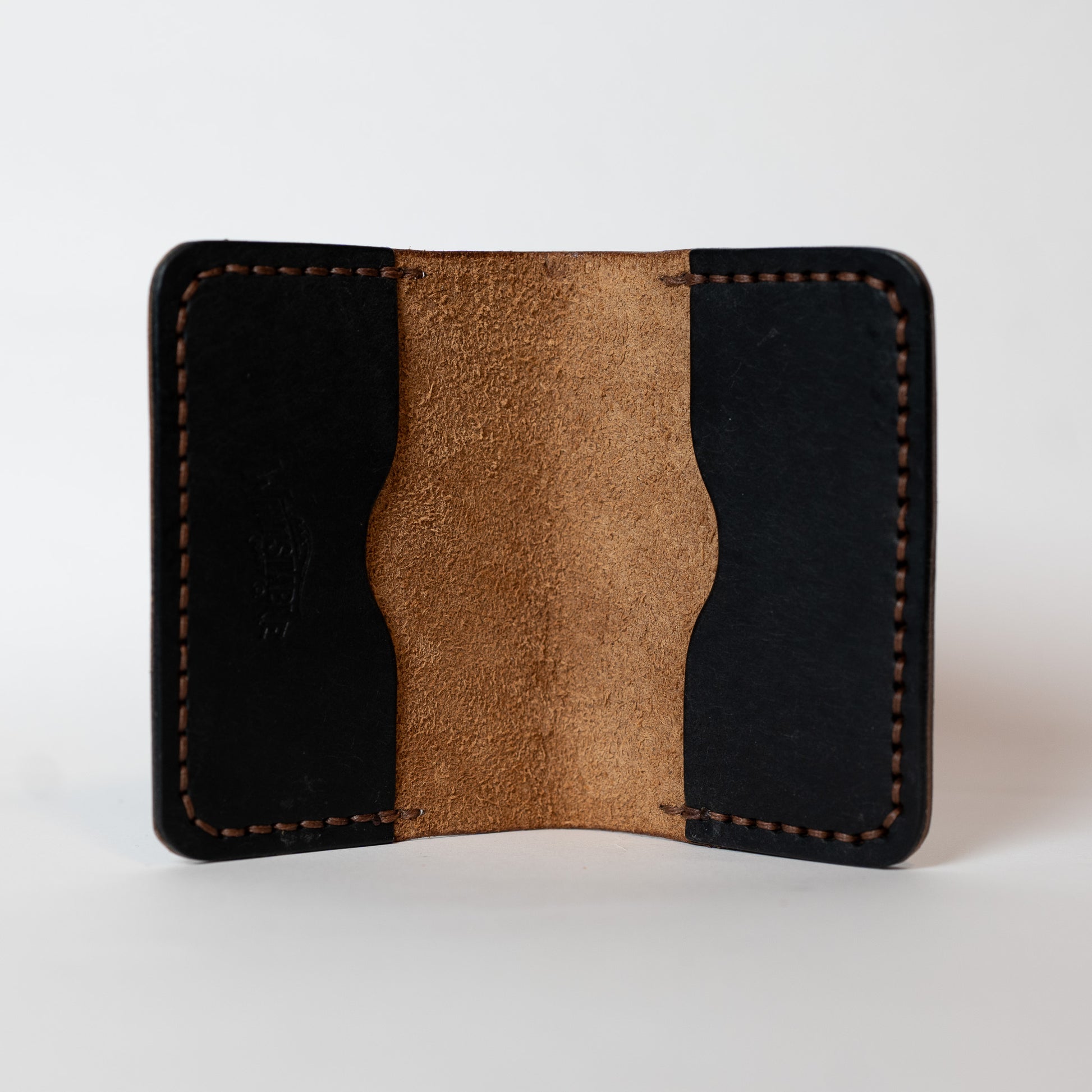 For those who like things that fold. Three slots, full-grain Italian leather, timeless form factor. Added peace of mind with the cards and cash stored securely inside, plus a quick access slot on the outside for your most used card. Starts snug with three cards and some folded cash, and will stretch comfortably to hold up to nine.